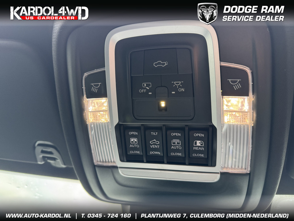 Alle technologie in de Dodge Ram 1500 is er op gericht om uw rit veilig en gemakkelijk te laten verlopen. Op de teller van deze goed onderhouden auto staat slechts 10 kilometer. De auto is van bouwjaar 2024. De krachtige benzinemotor staat garant voor uitstekende prestaties. Als u nog nooit een elektrisch bediend glazen panorama dak hebt gehad, is dit echt een ontdekking. Licht, lucht en ruimtelijk gevoel maken elke rit tot een feest. Helemaal in dit fraaie lederen interieur. Dankzij de elektrische stoelbediening is het gemakkelijk om de optimale zitpositie te vinden. Dankzij de stoelverwarming, verwarmbare achterbank en het verwarmbare stuur in deze auto, krijgt het begrip rijcomfort een nieuwe betekenis. Deze Dodge Ram 1500 is voorzien van luchtvering, en dat is te merken aan de rimpelloze wegligging. Ook 22 inch lichtmetalen velgen, LED koplampen, geluidsisolerende ramen, zwarte hemelbekleding, elektrisch inklapbare buitenspiegels en in delen neerklapbare achterbank horen tot de voorzieningen op deze auto.