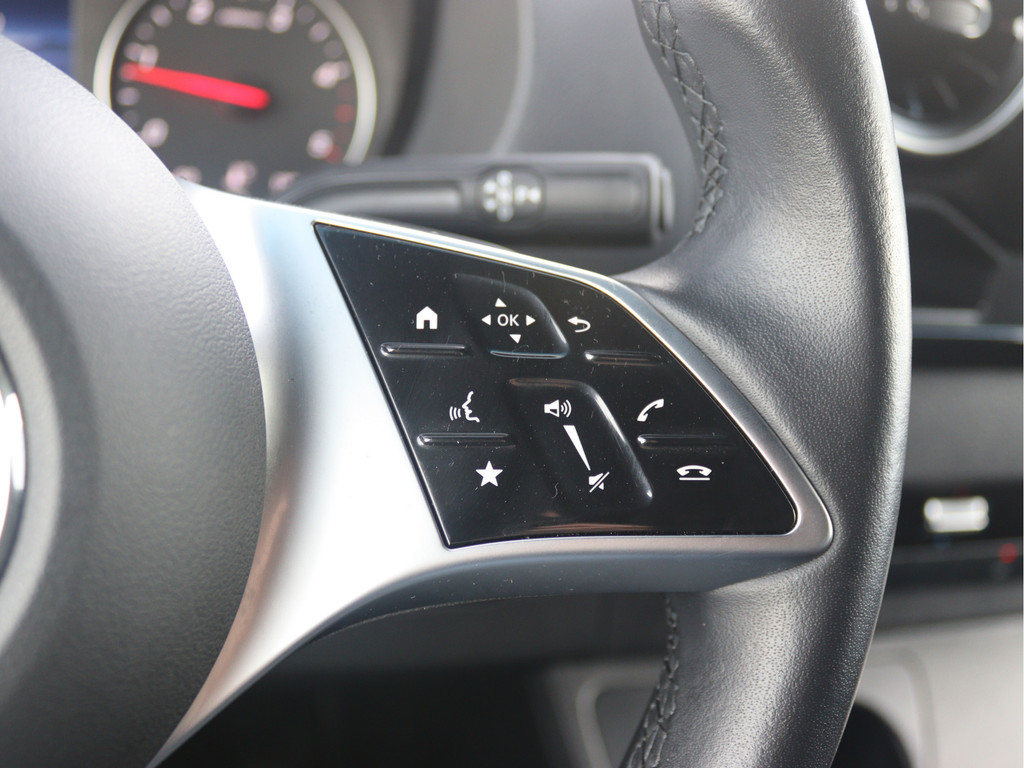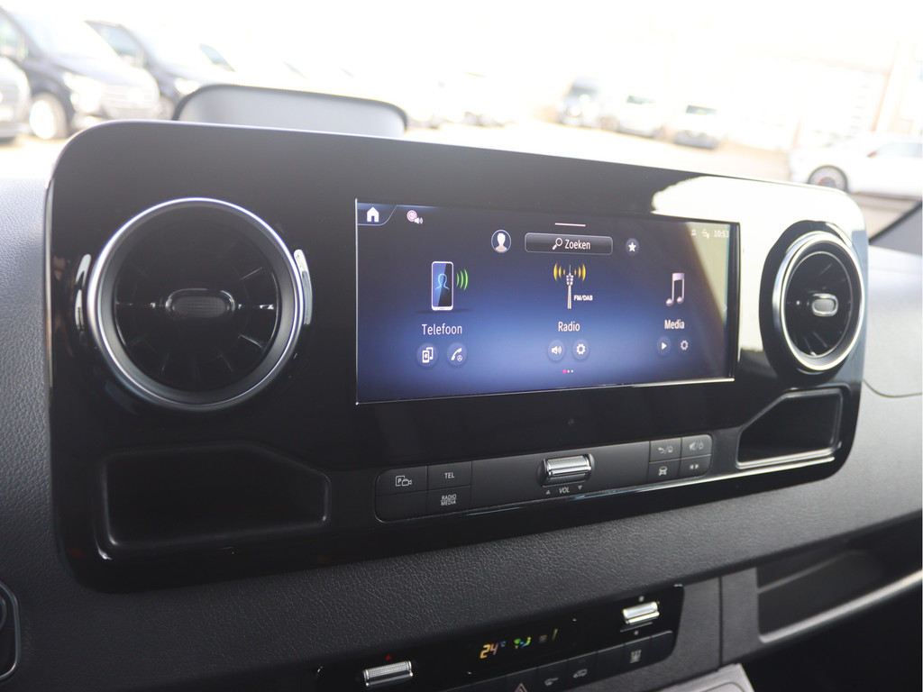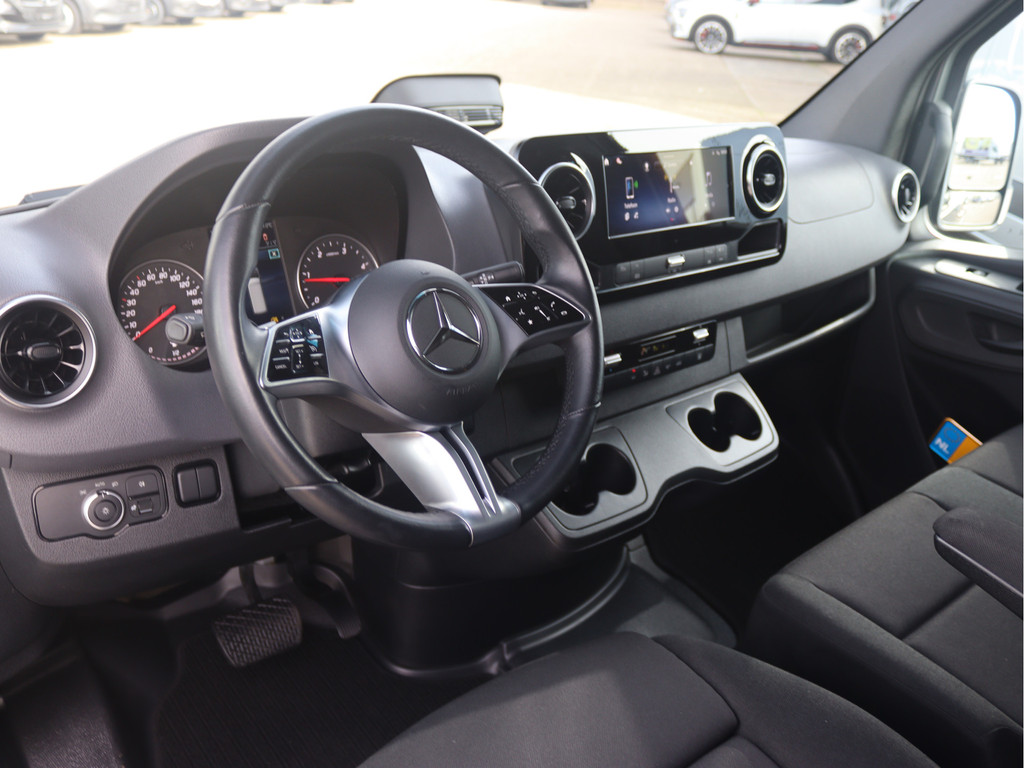 De Sprinter is o.a. voorzien van airco, standverwarming, geveerde bestuurdersstoel, 10,25" MBUX multimediasysteem met Apple CarPlay en Android Auto, achteruitrijcamera, LED Intelligent Light System, volledige laadruimte betimmering en cruise control.